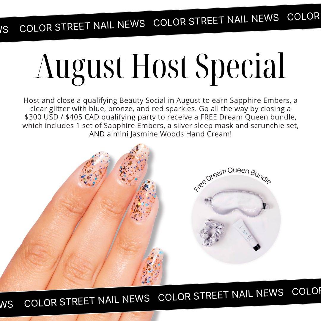 | Happy AugustHey there, Reader Summer’s almost over, but there’s still plenty of time to shine! I’m back with your August Glimmer Gal Update so you can catch up on all the sparkle, sneak peeks, and specials this month. First of all, my AilenesGlimmerNails.com website, blog, and email address will be phasing out. You will soon see a new email address (sneak peak of the new name is in this email header). Stay tuned as I make some changes to my business platforms, but know that helping Glimmer and Grace VIPS, like you, share your inner sparkle is my top priority. 💎 Host a Party & Earn RewardsHost and close a qualifying Beauty Social in August and receive Sapphire Embers — a clear glitter sparkling with blue, bronze, and red — free!  💌 Color Play Theme: The Luxe EditDrip in decadence with posh designs and dazzling glitters that mix high fashion with high shine.