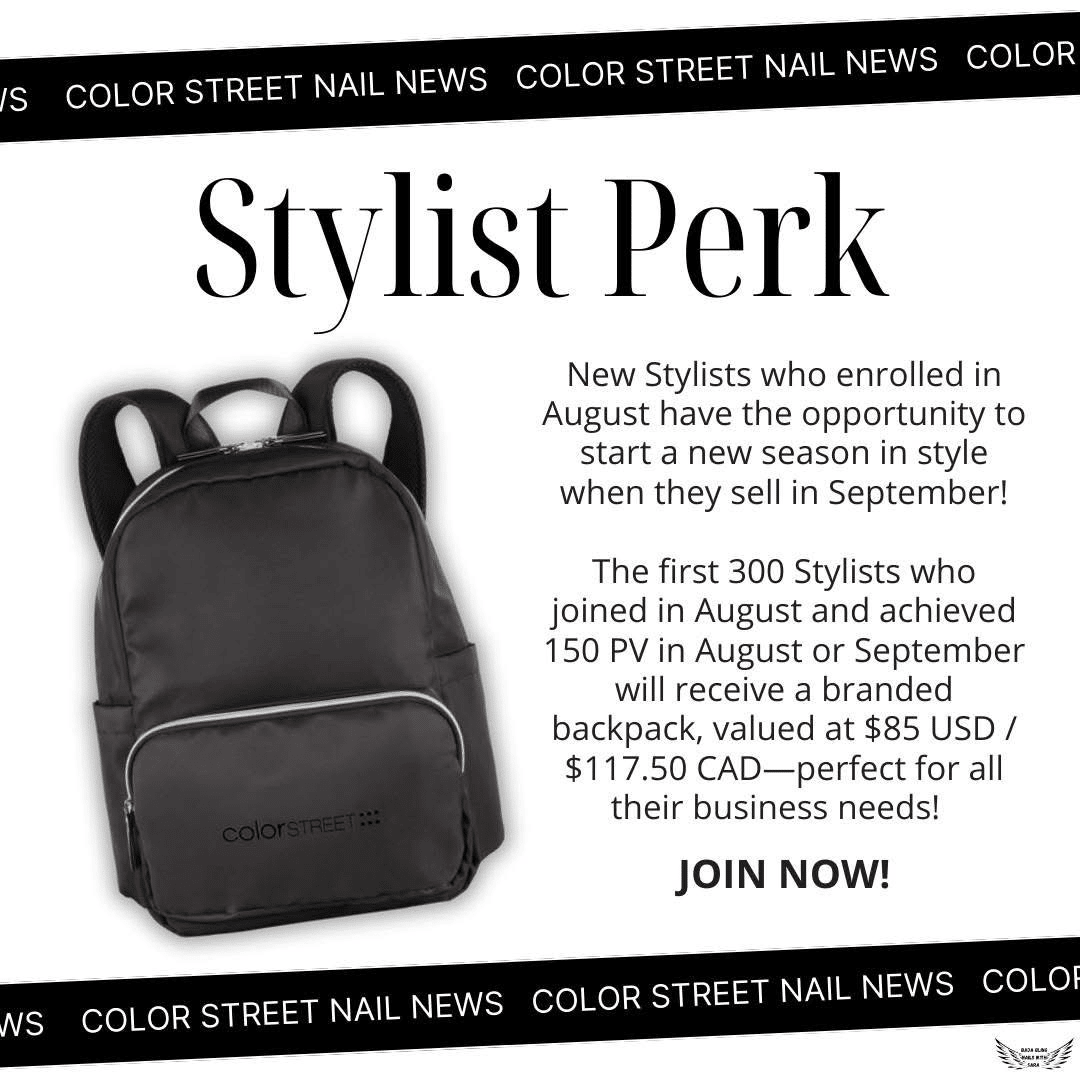 Stylists also enjoy exclusive perks like early access to launches, like the Gothic Glam Halloween Collection (public launch 9/19) is available early for Stylists! Plus, the first 300 new Stylists who hit $150 in sales (US) Aug/Sept earn a free $85 business backpack.